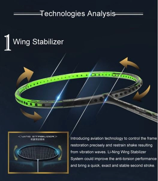 - WING STABILIZER: Công nghệ siêu đặc biệt ổn định vành vợt giúp khung luôn ổn định trước tác động lực đa chiều.